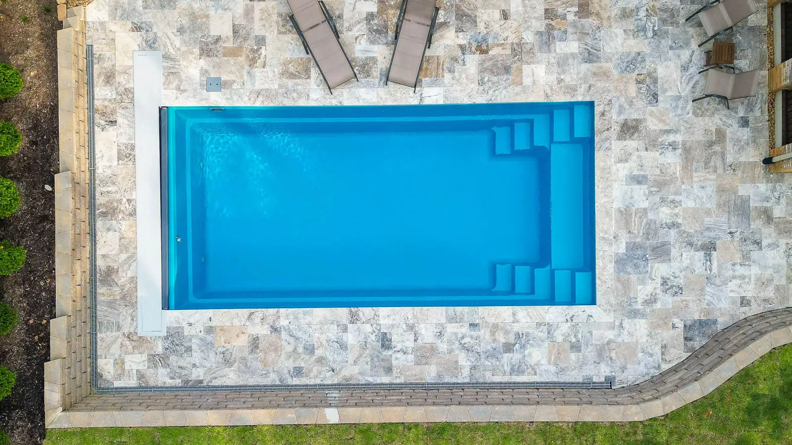 Large bench located at the step end with option to incorporate spa jets Flat-bottom design makes it the perfect pool for playing games or exercising Option to incorporate a swim jet system to provide resistance training for the avid swimmer Convenient entry and exit steps allow access from both sides of the pool