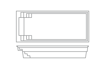 A flat-bottom pool that is perfect for group play activities and to fulfill exercise goals. A full bench is situated at the front of the pool coupled with entry stairs along both sides of the pool. This pool allows for the placement of spa jets around it or even a full swim jet package.
